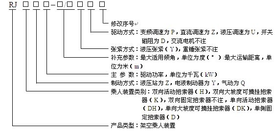 乘人裝置型號表示方法必須符合MT/T154.8-1996、AQ1038-2007的規(guī)定。