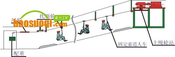 3、 制動(dòng)可靠,本公司設(shè)計(jì)生產(chǎn)的繩索運(yùn)人系統(tǒng)除高速工作制動(dòng)外,在大于10°坡的系統(tǒng)設(shè)末端鉗形閘,制動(dòng)裝置均為失效安全型,液壓泵站結(jié)構(gòu)先進(jìn)、安全、可靠。